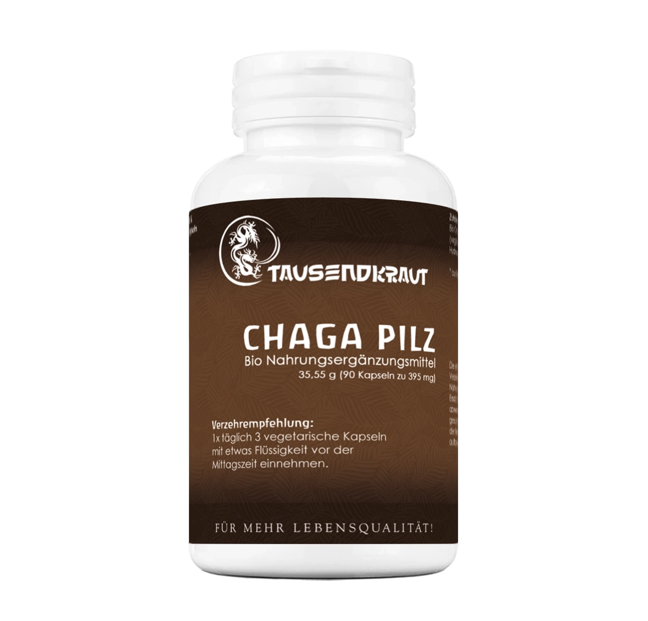 Gesamtinhalt: 35,55 g (90 Kapseln zu 395 mg) *RDA = Prozentsatz der empfohlenen Tagesdosis Hier findest Du unser Chaga BIO Pulver |