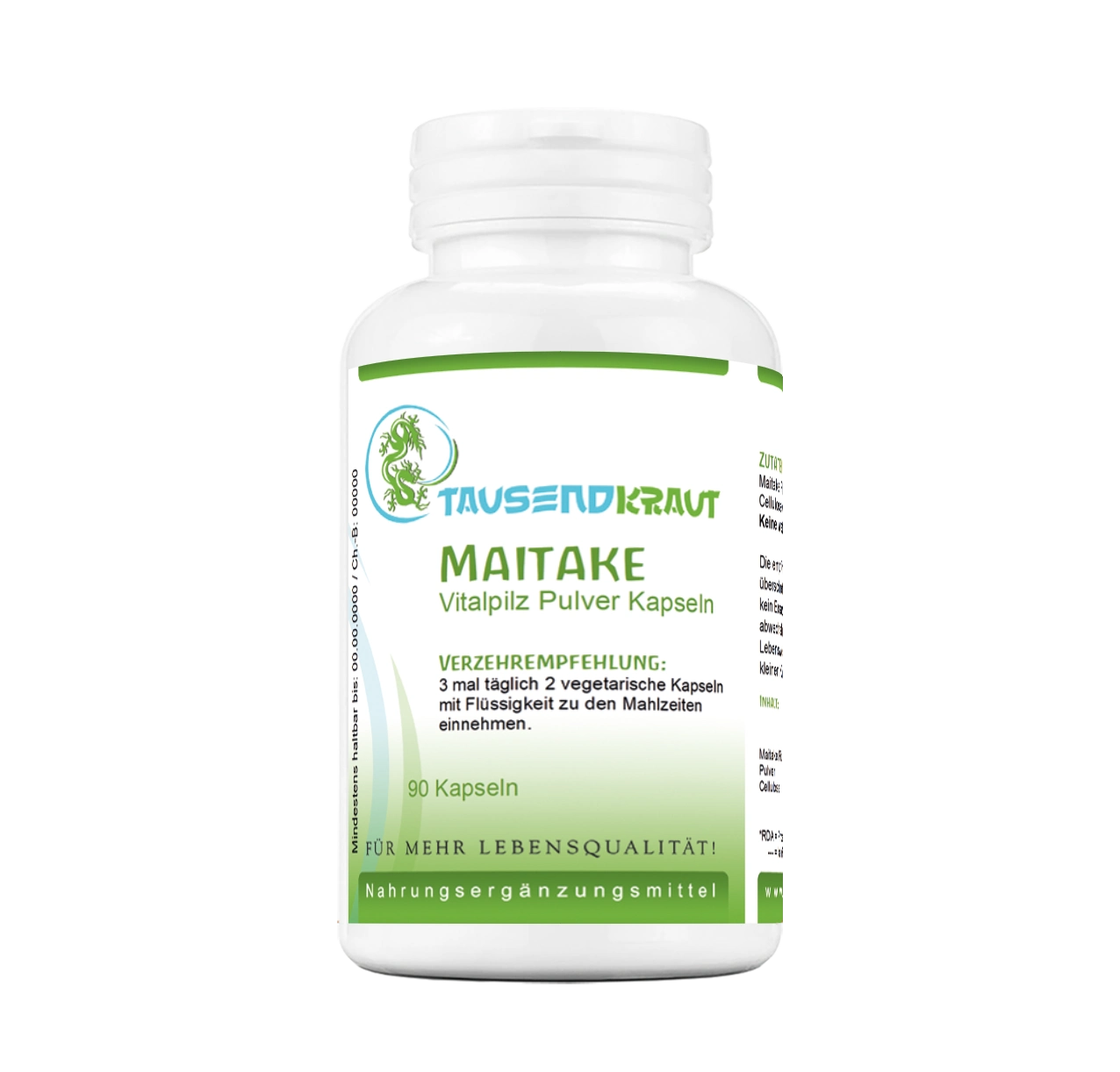 Maitake Pilz Pulver, E464 (vegetarische Kapselhülle): Hydroxypropylmethylcellulose |
