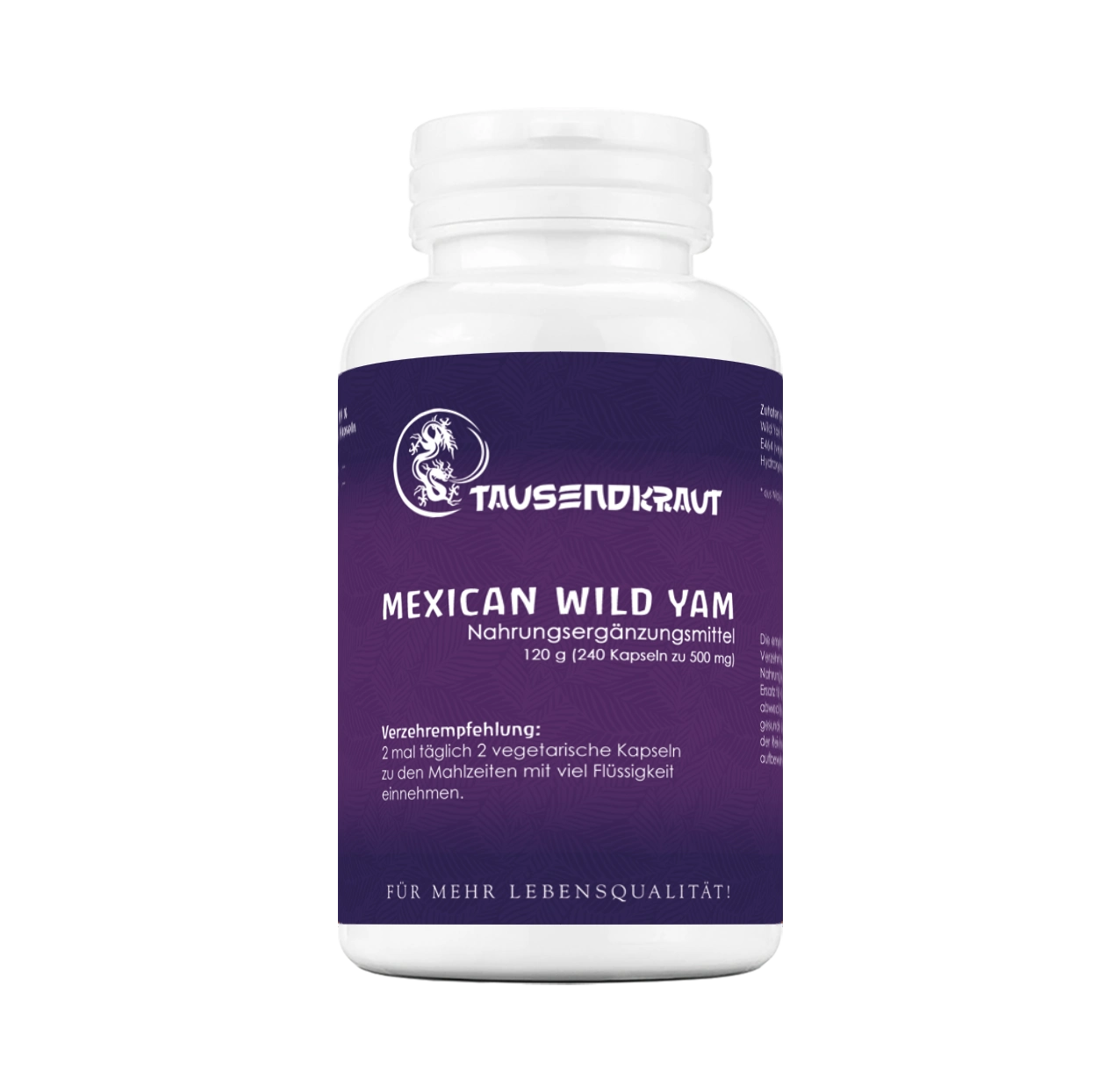 Wild Yam Pulver [Dioscorea villosa]*, E464 (vegetarische Kapselhülle): Hydroxypropylmethylcellulose *aus Wildsammlung / enthält Diosgenin |