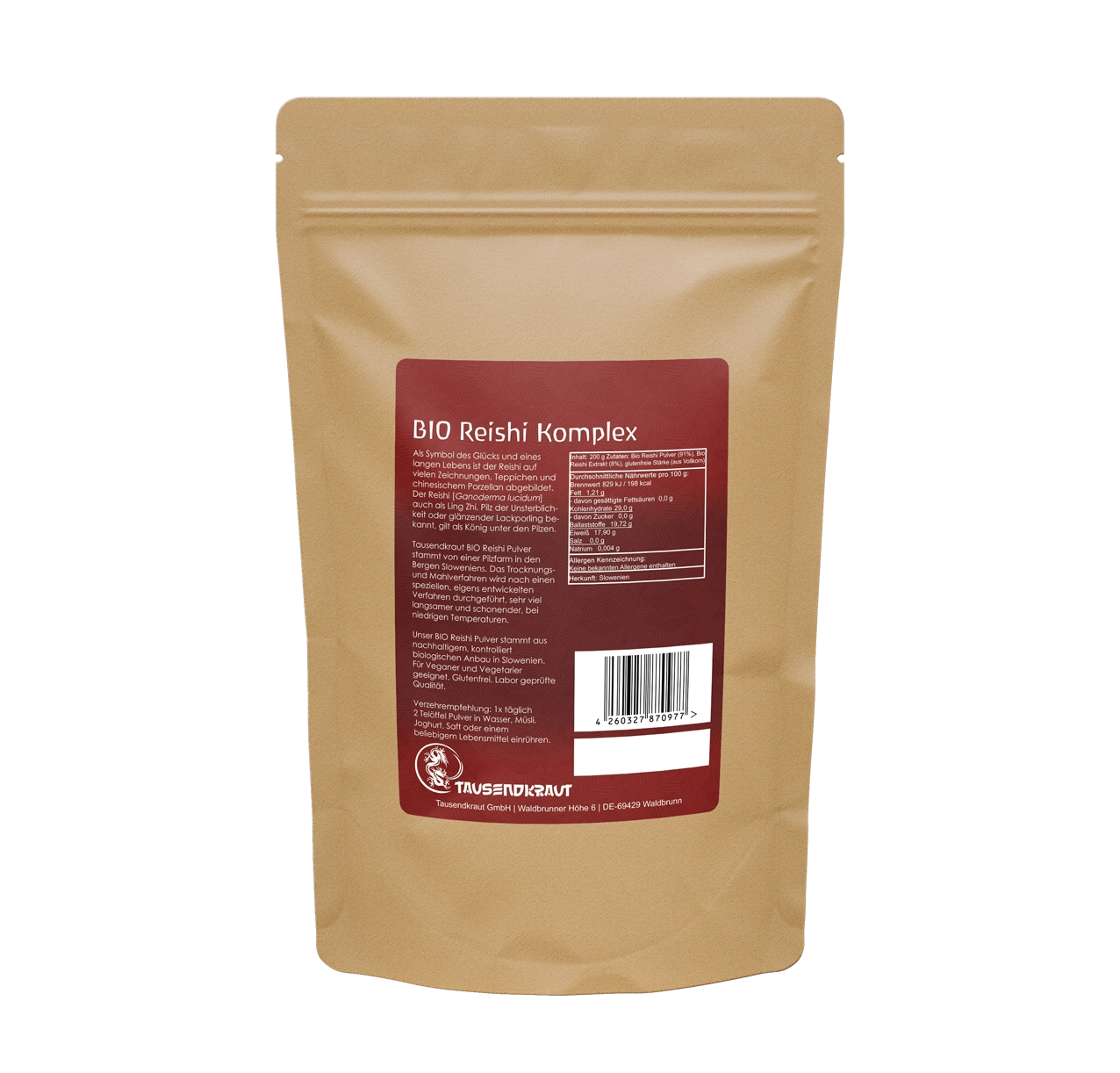 | Inhalt: | 200g BIO Reishi in einer wiederverschließbaren Aroma Schutzverpackung | ||||||||||||||||||