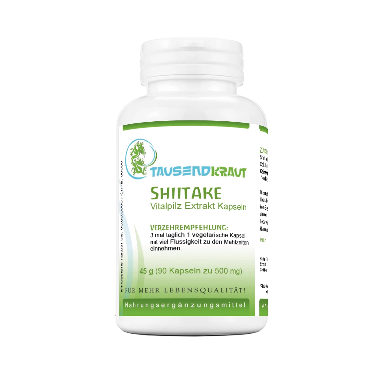 Shiitake Pilz Extrakt*, E464 (vegetarische Kapselhülle): Hydroxypropylmethylcellulose