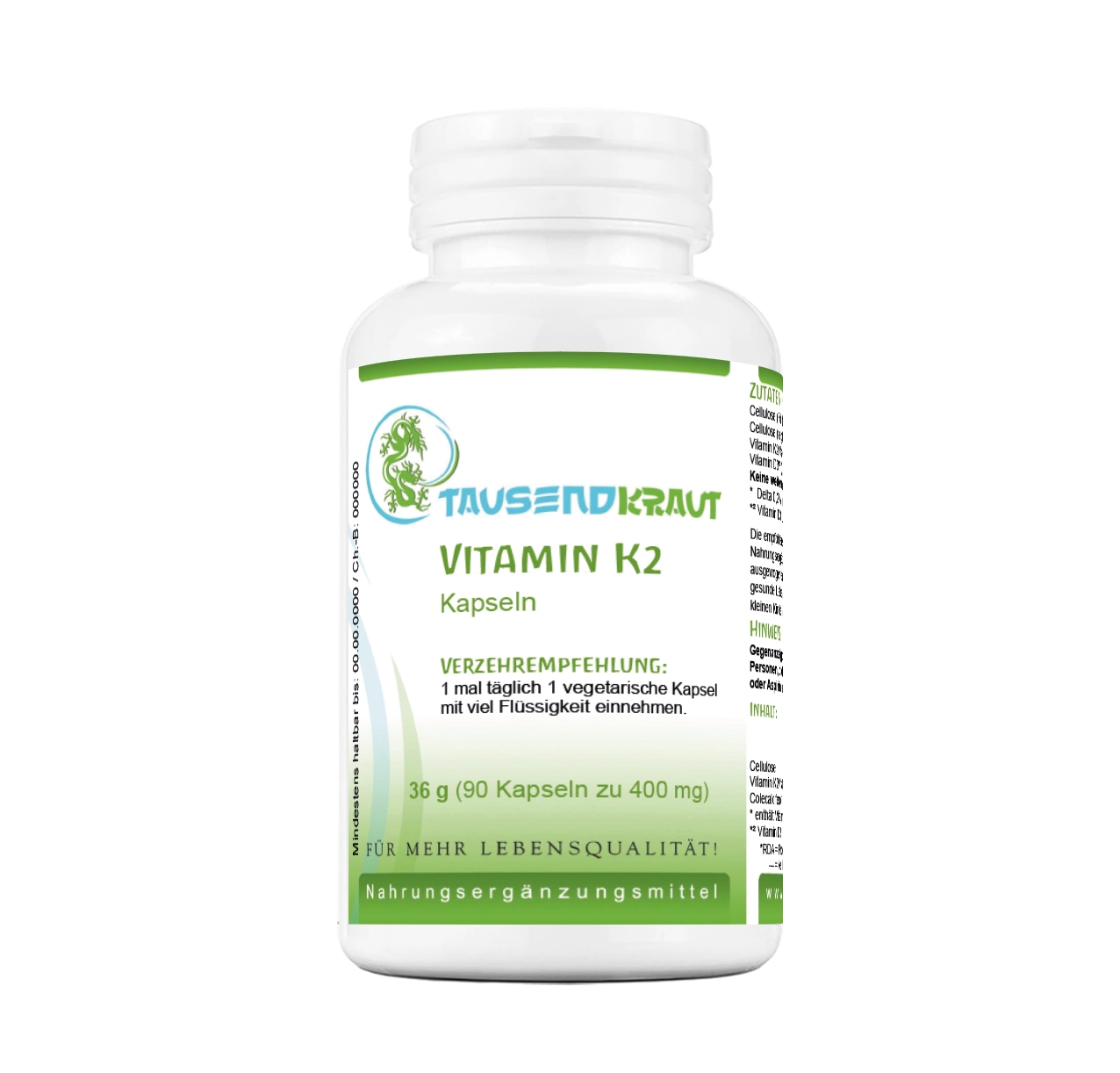 Tausendkraut Vitamin K2 enthalten das wertvolle K2Vital® und damit eine besonders ausgewogene und sinnvolle Rezeptur für Ihren Vitamin K2 Haushalt